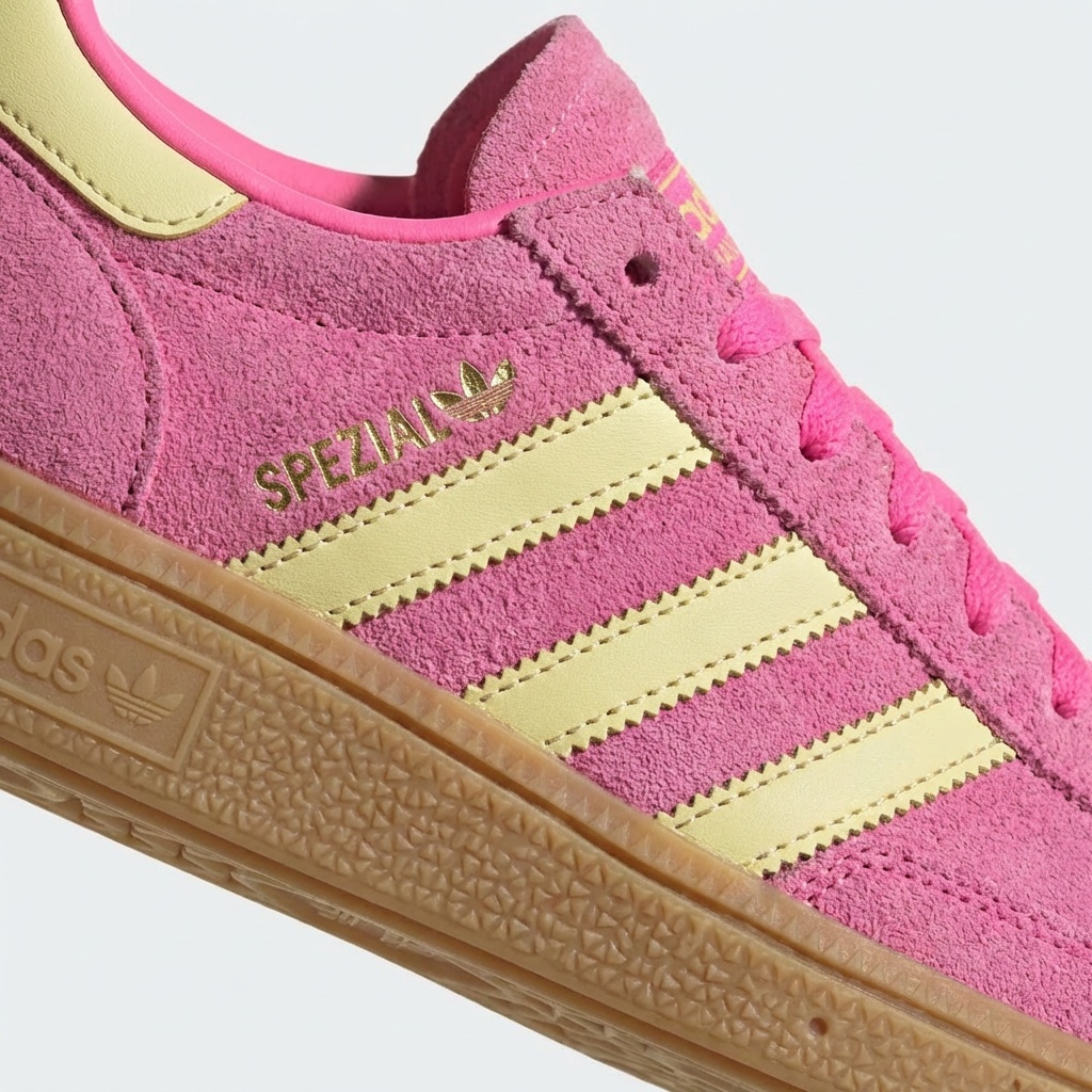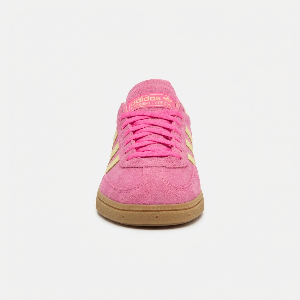 Die Schuhe ADIDAS Handball Spezial W sind eine Neuinterpretation des Kultmodells aus den 70er Jahren, das ursprünglich für Handball entwickelt wurde. Das Modell in Lucid Pink kombiniert intensives rosa Wildleder mit kontrastierenden goldenen Streifen und Gummisohle. Das Futter im selben Rosa sowie das charakteristische Logo auf der Zunge unterstreichen die Authentizität dieses klassischen Designs.