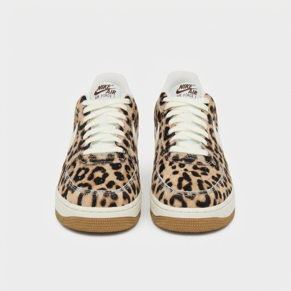 Nike Air Force 1 ’07 sind ikonische Sneaker in einer Edition mit wildem Gepardenmuster auf beigem Hintergrund. Der Schaft wurde aus Naturleder mit effektvollem Animal Print-Aufdruck gefertigt, der den Schuhen einen ausdrucksstarken Charakter verleiht. Weiße Schnürsenkel und das Swoosh-Logo bilden kontrastierende Akzente auf der gemusterten Oberfläche.