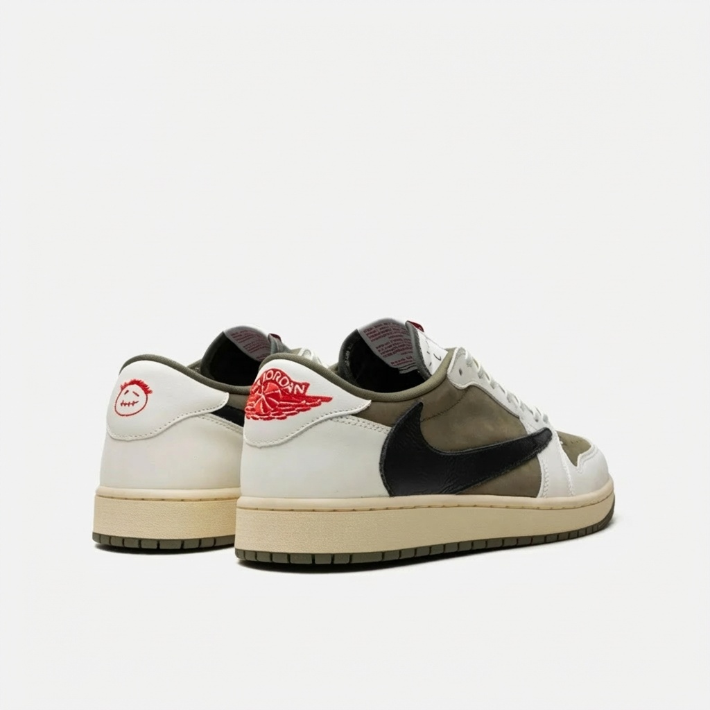 Das Modell Air Jordan 1 Low OG SP Travis Scott Medium Olive ist das Ergebnis der Zusammenarbeit zwischen Nike und Rapper Travis Scott. Die Sneaker zeichnen sich durch eine Farbgebung aus, die olivgrüne Töne mit weißen und schwarzen Details kombiniert. Das Obermaterial besteht aus hochwertigem Naturleder und Textilmaterialien, angereichert mit charakteristischer Perforation an der Schuhfront.
