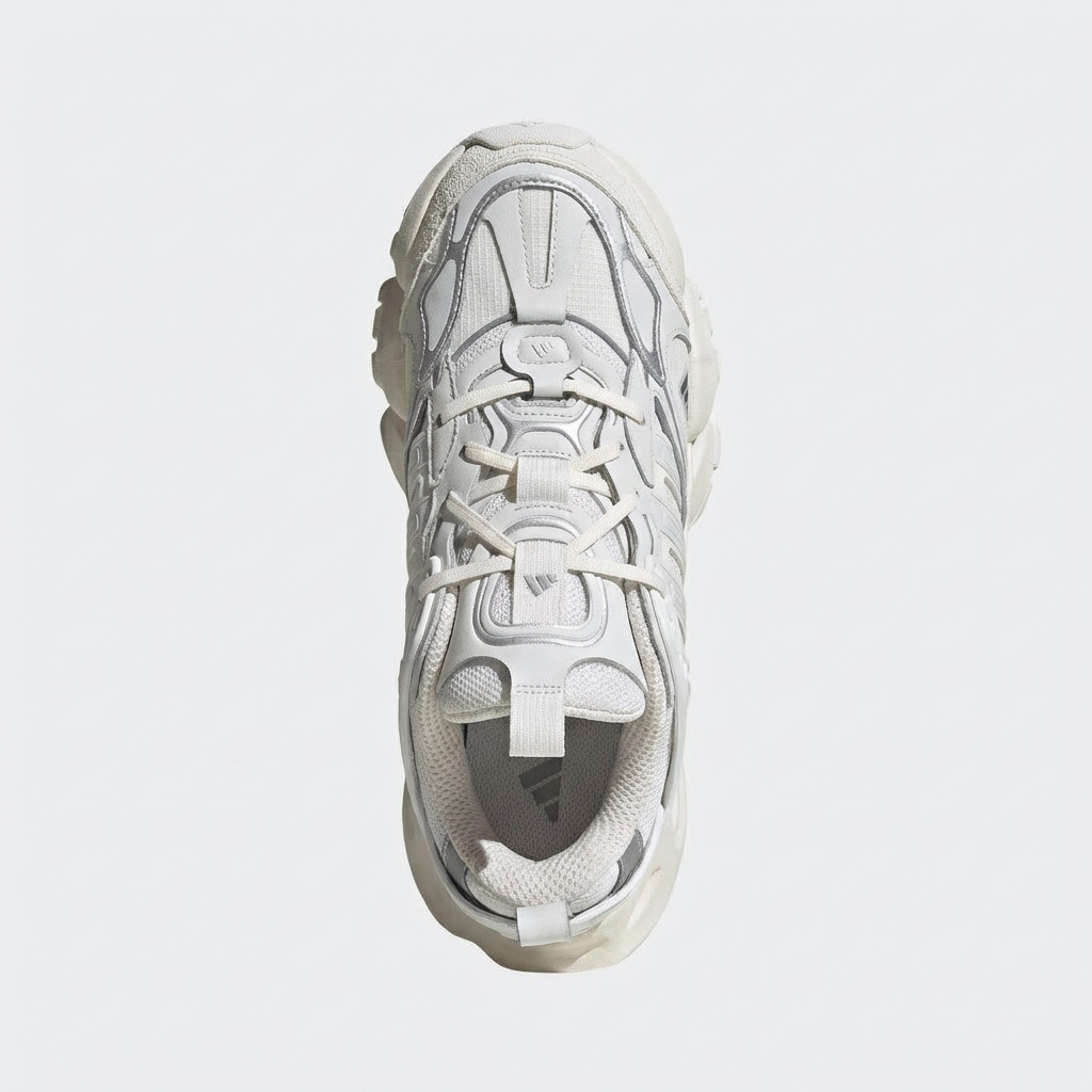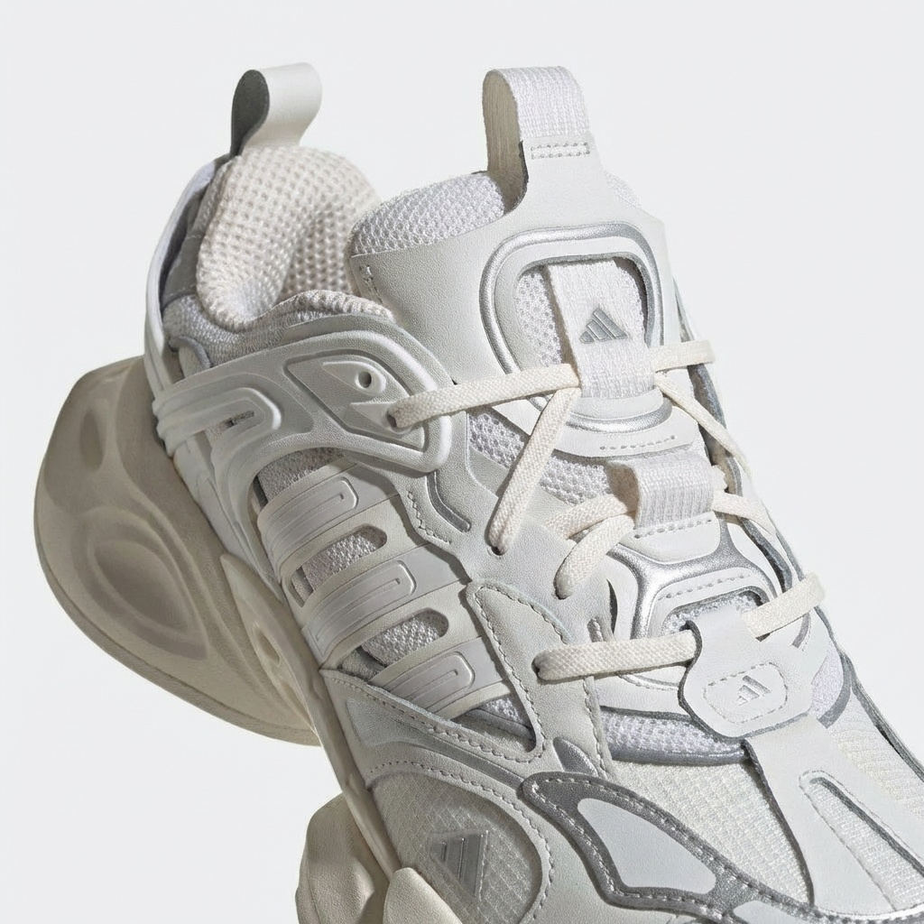 Las Adidas XLG Runner Deluxe son sneakers de diseño futurista con una característica suela masiva. La coloración blanca se complementa con acentos plateados en los paneles laterales y detalles. La construcción combina materiales de mesh con elementos de piel y sintéticos.