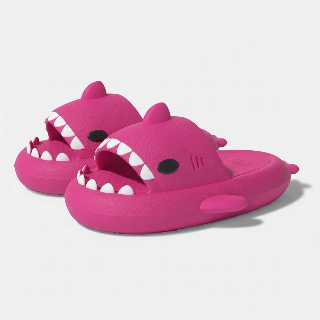 Las zapatillas con diseño original de tiburón combinan estilo divertido con la practicidad del uso diario. El color rosa con dientes blancos contrastantes y ojos negros crea una apariencia característica. Fabricadas en espuma EVA garantizan ligereza y elasticidad.