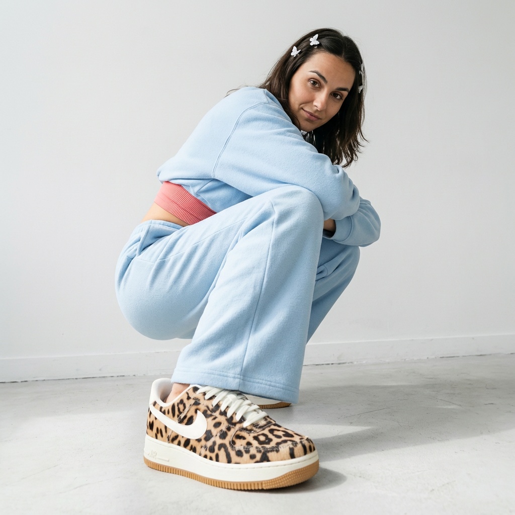 Nike Air Force 1 ’07 son las icónicas zapatillas en edición con salvaje estampado de guepardo sobre fondo beige. El corte ha sido confeccionado en piel natural con llamativo estampado animal print que aporta carácter distintivo a las zapatillas. Cordones blancos y logo Swoosh crean acentos contrastantes sobre la superficie estampada.