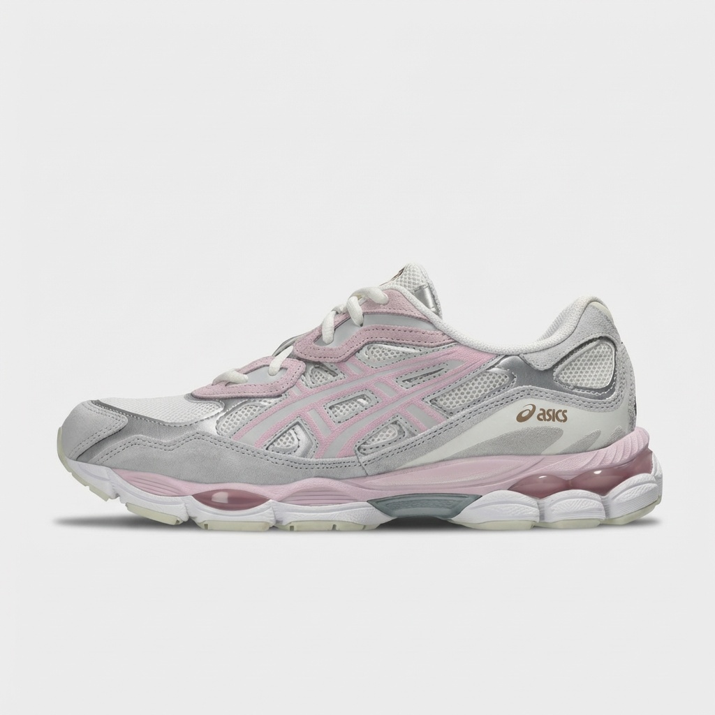 Les sneakers ASICS GEL-NYC sont un mélange de style rétro et de technologie moderne. Le modèle dans le coloris Barely Rose présente une association harmonieuse de gris, d’accents crème et de détails roses délicats. La construction combine mesh respirant, éléments en daim et inserts synthétiques, créant une texture caractéristique de l’ensemble.