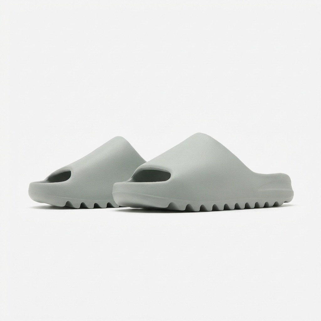 Les claquettes ADIDAS Yeezy Slide Salt présentent un design minimaliste dans une teinte grise sobre. Entièrement réalisées en mousse EVA, elles garantissent légèreté et souplesse. La semelle sculptée caractéristique avec découpes géométriques constitue le signe distinctif de cette ligne culte.