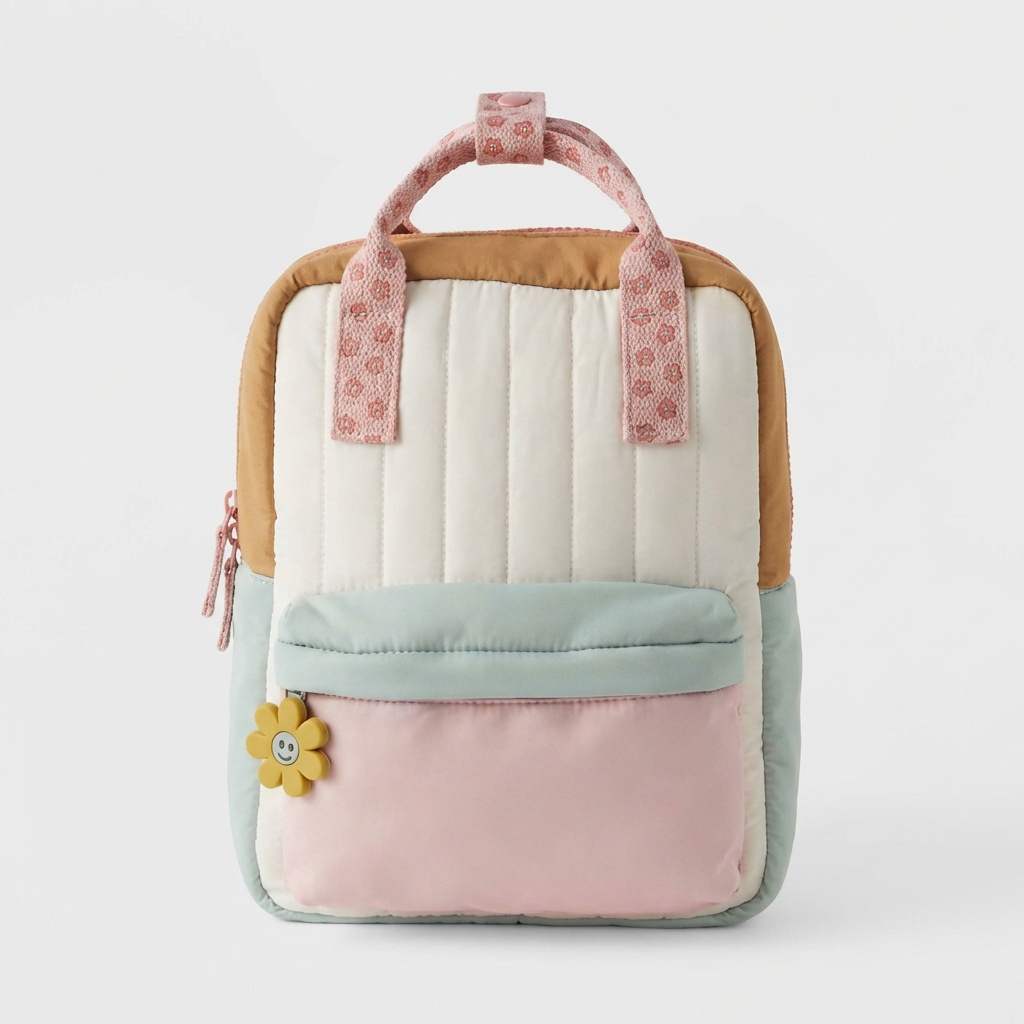 Sac à dos au design géométrique alliant des nuances pastel de rose, menthe et crème avec des accents caramel. Construction en polyester enrichie de bretelles à motifs floraux. Le modèle offre une organisation réfléchie de l’espace avec des fermetures éclair sécurisant le contenu.