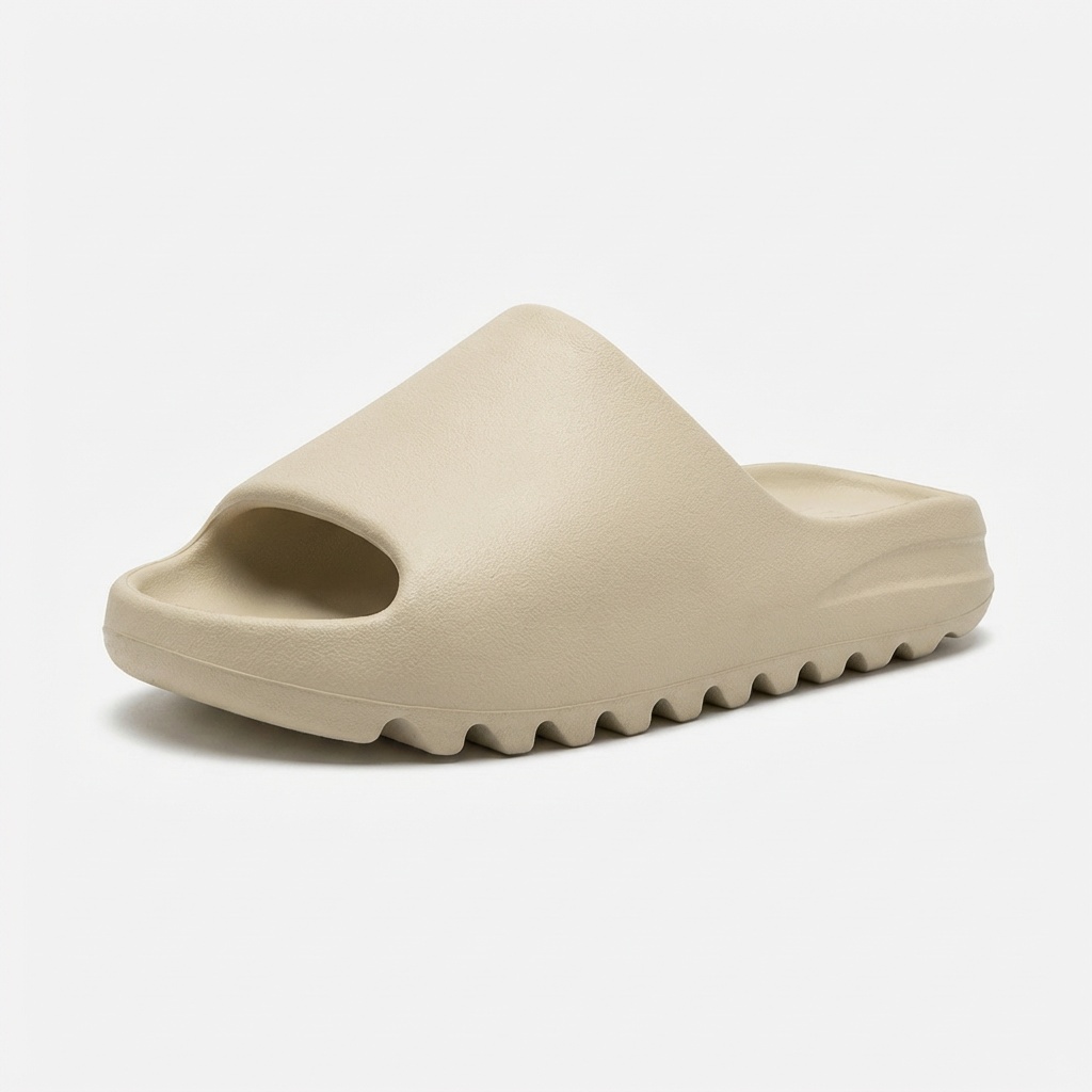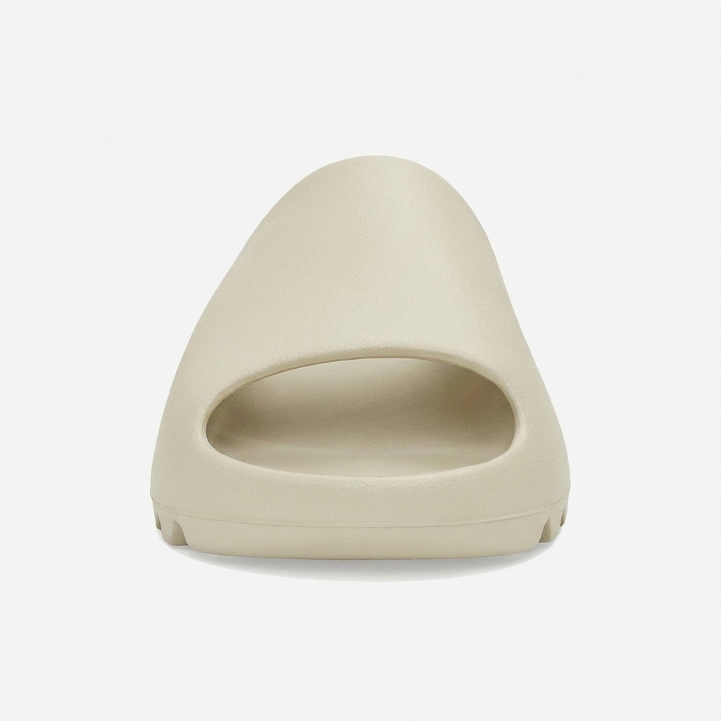 Le ciabatte Adidas Yeezy Slide Bone sono calzature domestiche minimaliste in una sottile tonalità beige. Realizzate interamente in leggera schiuma EVA, offrono flessibilità e comfort durante l’uso quotidiano. La caratteristica suola con scanalature profonde conferisce loro un aspetto riconoscibile.