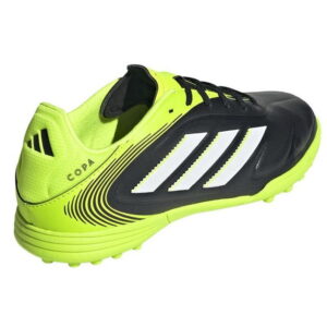 Buty piłkarskie Adidas Copa Pure III League TF Jr to idealny wybór dla młodych sportowców pragnących doskonałości na sztucznej murawie. Wyróżniają się precyzyjnym podaniem oraz płynnym kontaktem z piłką, dzięki czemu każda rozgrywka nabiera nowego wymiaru. Cholewka Fusionfeel, choć syntetyczna, wygląda jak skóra i ma podobne właściwości dotykowe, co wspiera elegancką grę. Buty zostały wyposażone w gumową podeszwę zewnętrzną z wypustkami oraz podeszwę środkową z pianki EVA, co gwarantuje świetną przyczepność oraz komfort użytkowania. Standardowe dopasowanie, sznurowanie oraz perforowany język i wyściełany zapiętek zapewniają dodatkową wygodę.