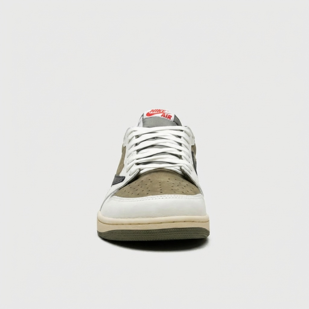 Model Air Jordan 1 Low OG SP Travis Scott Medium Olive to efekt współpracy Nike z raperem Travis Scottem. Sneakersy wyróżniają się kolorystyką łączącą oliwkowe odcienie z białymi i czarnymi detalami. Cholewka wykonana z wysokiej jakości skóry naturalnej i materiałów tekstylnych, wzbogacona o charakterystyczną perforację na przodzie buta.