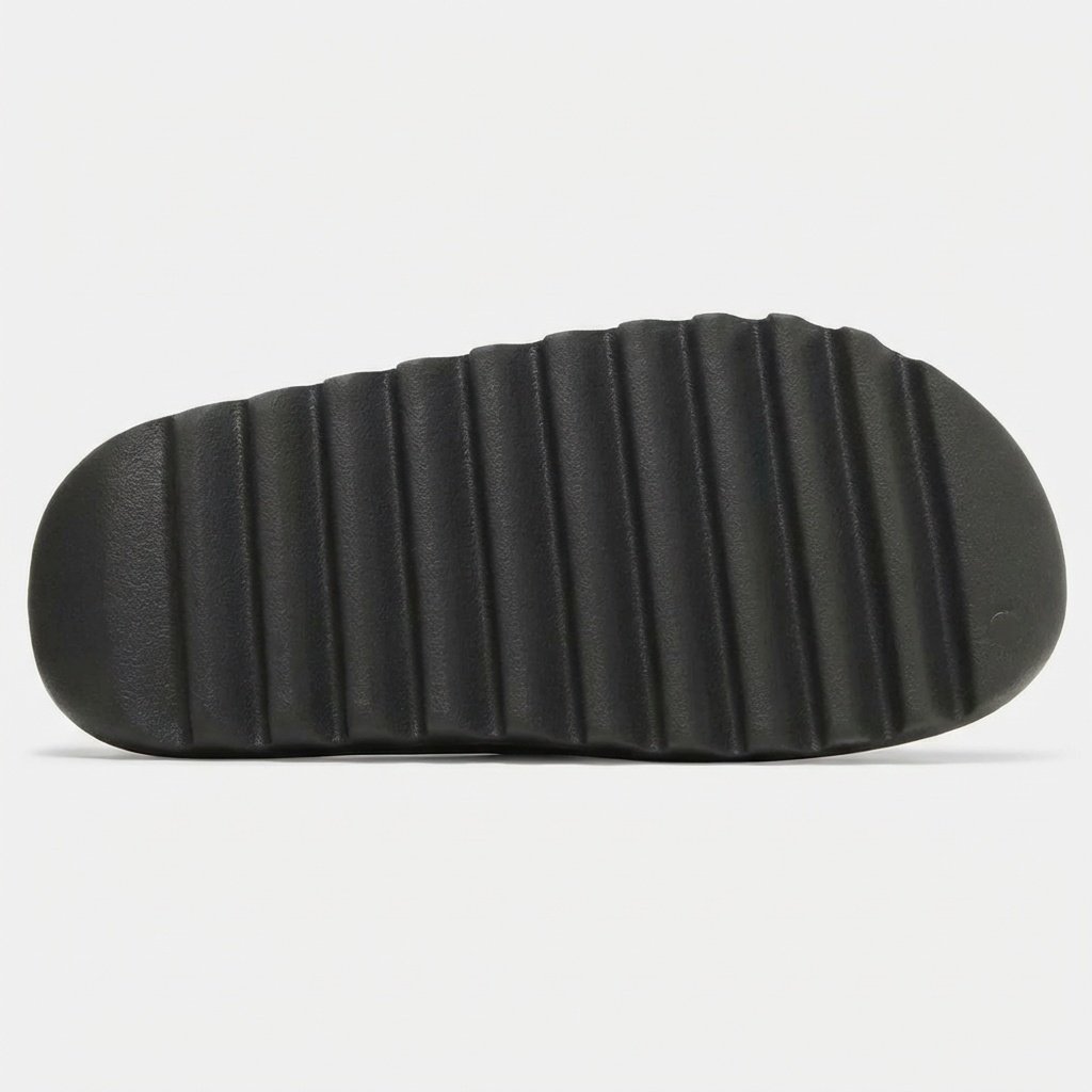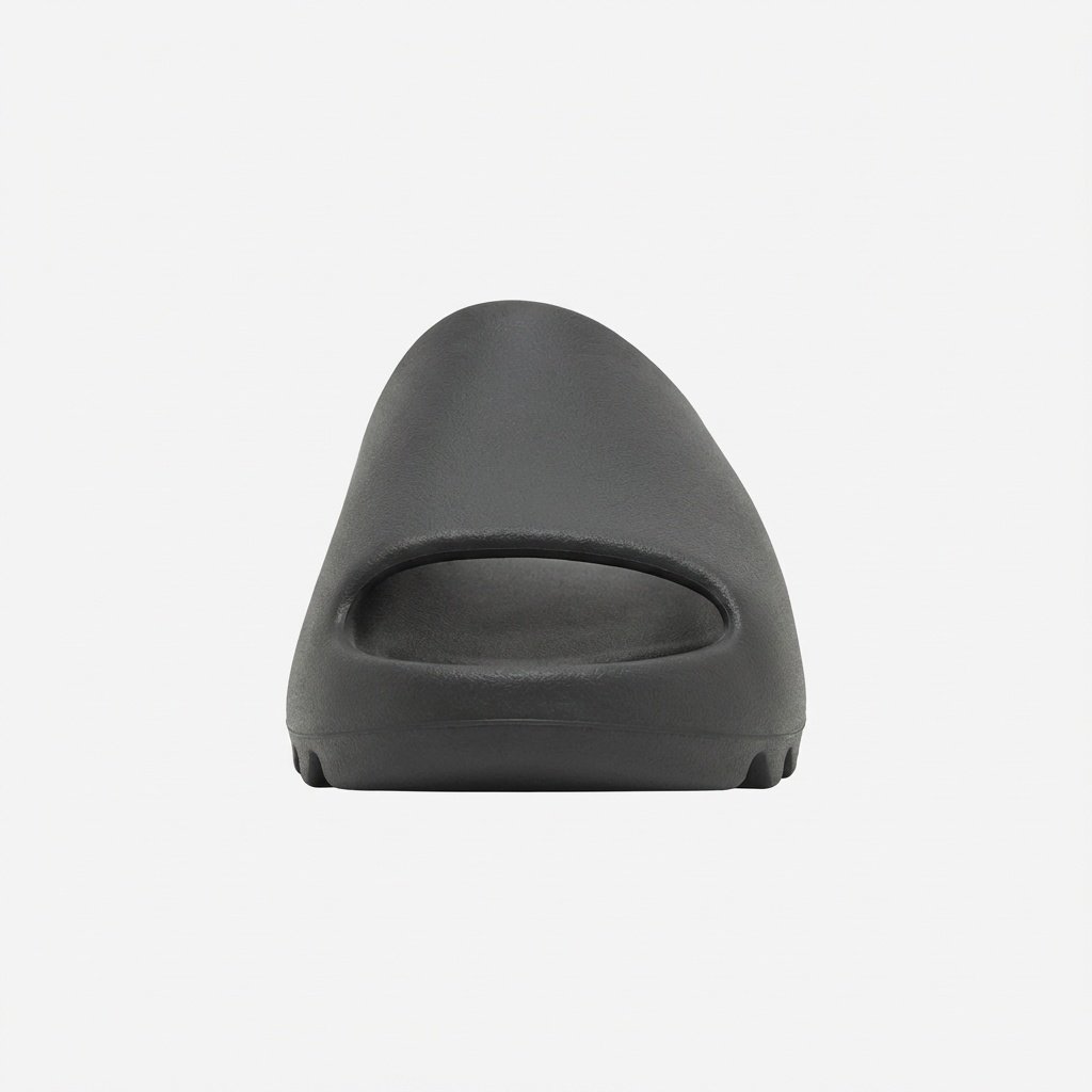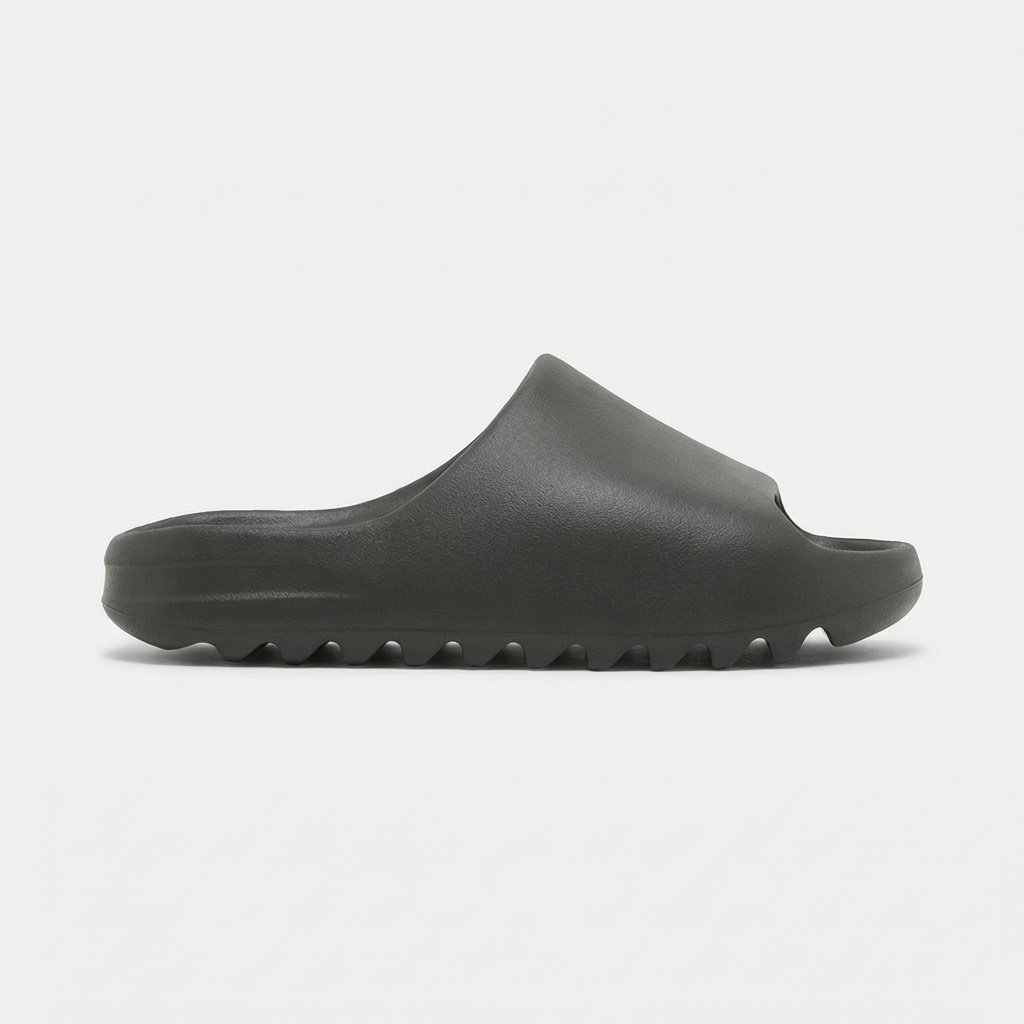 Kapcie Adidas Yeezy Slide Dark Onyx to model wykonany w całości z lekkiej pianki EVA w grafitowym odcieniu. Charakteryzują się jednolitą konstrukcją bez dodatkowych elementów dekoracyjnych. Ergonomiczna podeszwa z żebrowaniem zapewnia przyczepność i wygodę noszenia.