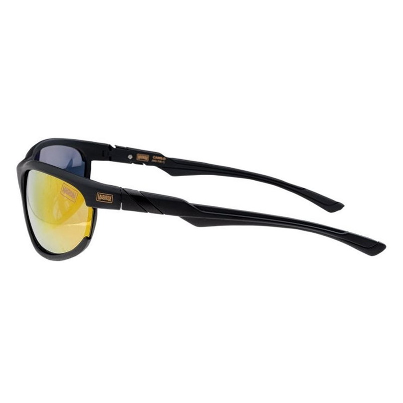 Odkryj nowy wymiar stylu z okularami przeciwsłonecznymi Camilo marki Magnum. Łączą one nowoczesny design z zaawansowaną technologią. Soczewki UV400 i filter UV 3 chronią przed promieniowaniem UV. Polaryzujące soczewki minimalizują odblaski, a oprawki z Grilamidu TR90 gwarantują lekkość i komfort. Powłoka REVO eliminuje odblaski i poprawia kontrast, dając tęczowy kolor. Idealne do jazdy i sportów na świeżym powietrzu.