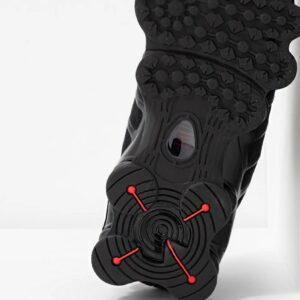 Cholewka wykonana z siateczki i syntetycznych paneli w czarno-srebrnej kolorystyce nadaje butom nowoczesny, dynamiczny wygląd. Metaliczne akcenty podkreślają futurystyczny charakter modelu.