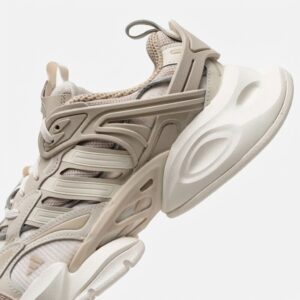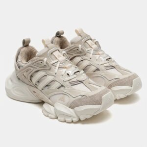 Adidas XLG Runner Deluxe are sneakers with futuristic design inspired by the 2000s. Multi-layered upper combines leather, mesh and synthetic panels in beige-gray tones. Chunky midsole provides wearing comfort and striking appearance.