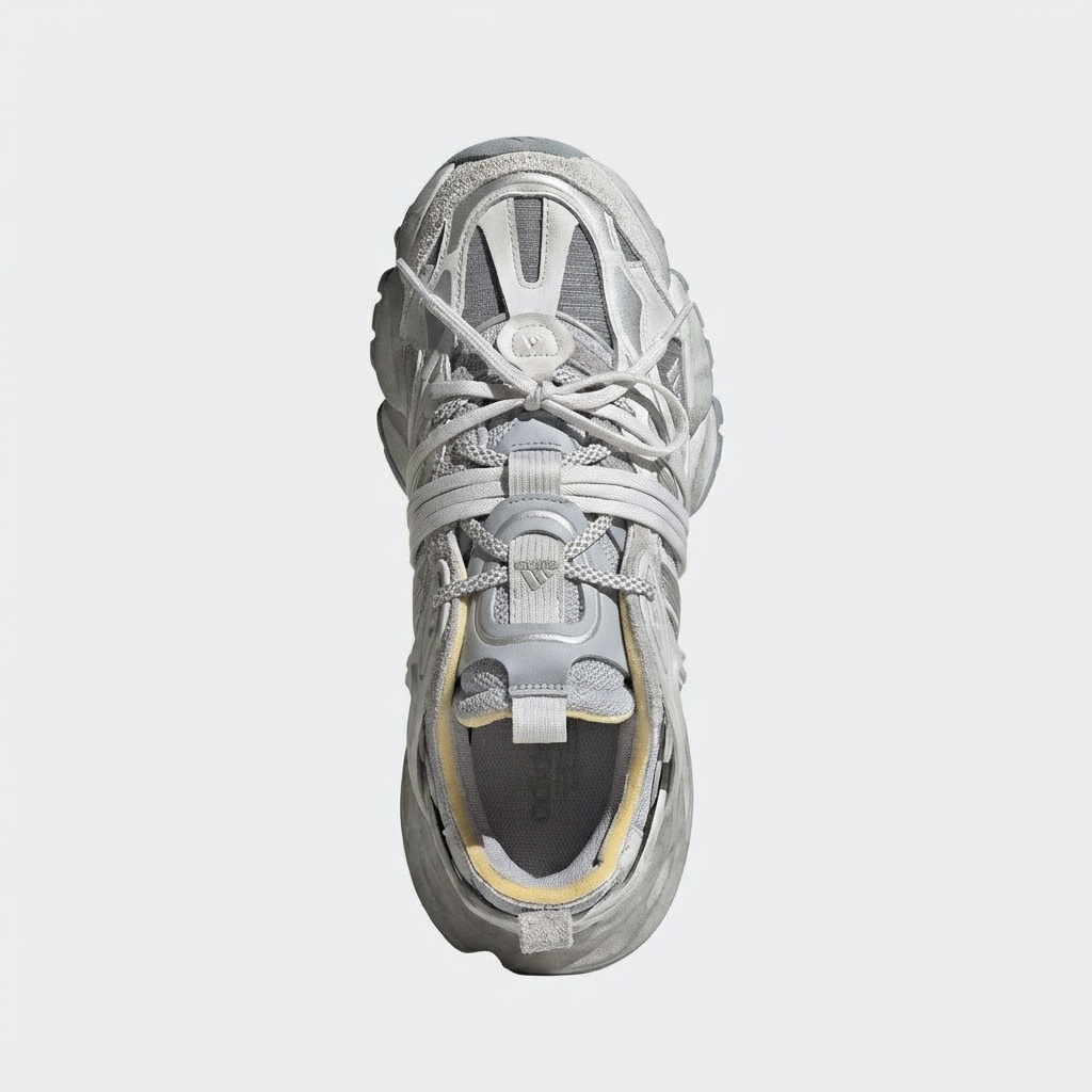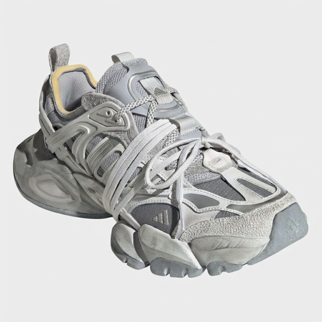 ADIDAS XLG Runner Deluxe Wonder Grey shoes are sports model with characteristic chunky sole and futuristic design. Multi-layered upper combines different textures and materials in monochromatic grey colorway. Boost technology in midsole provides cushioning and energy return.