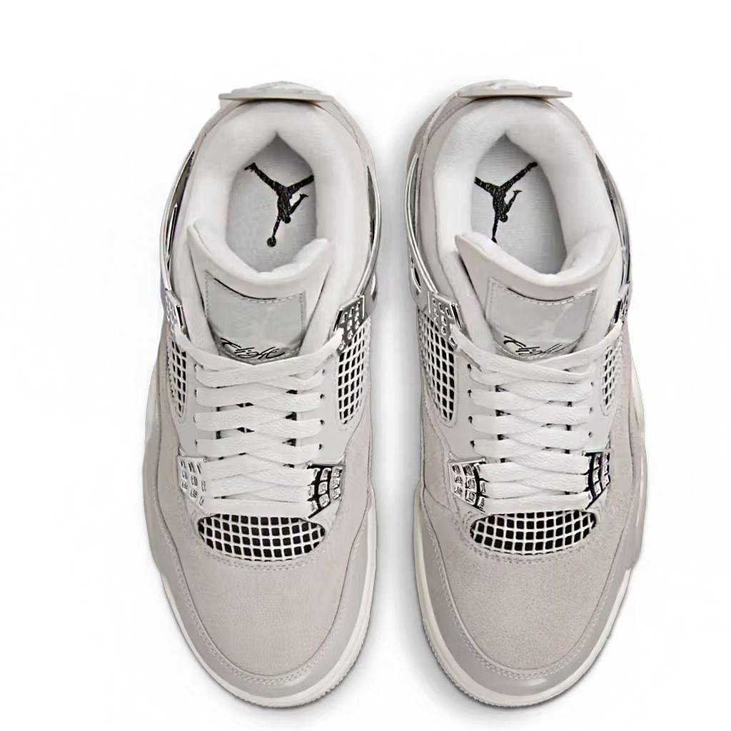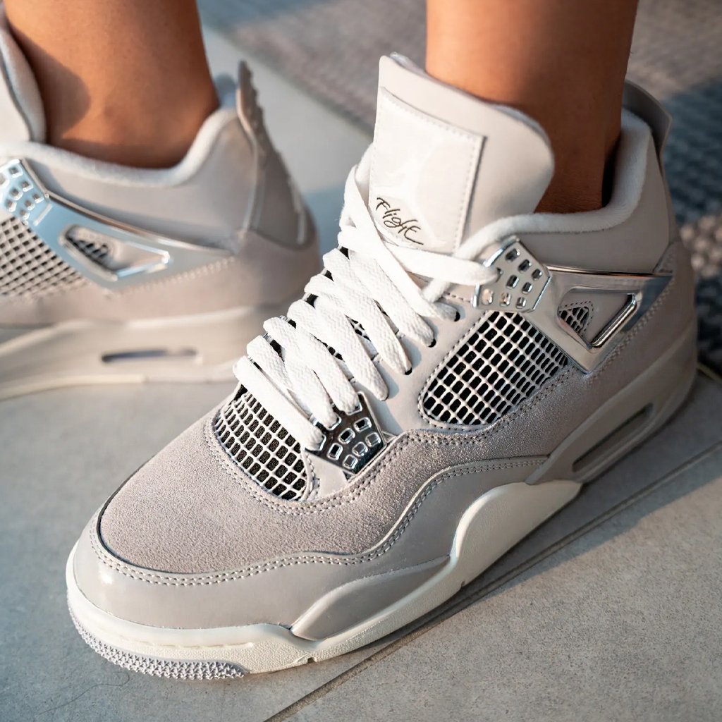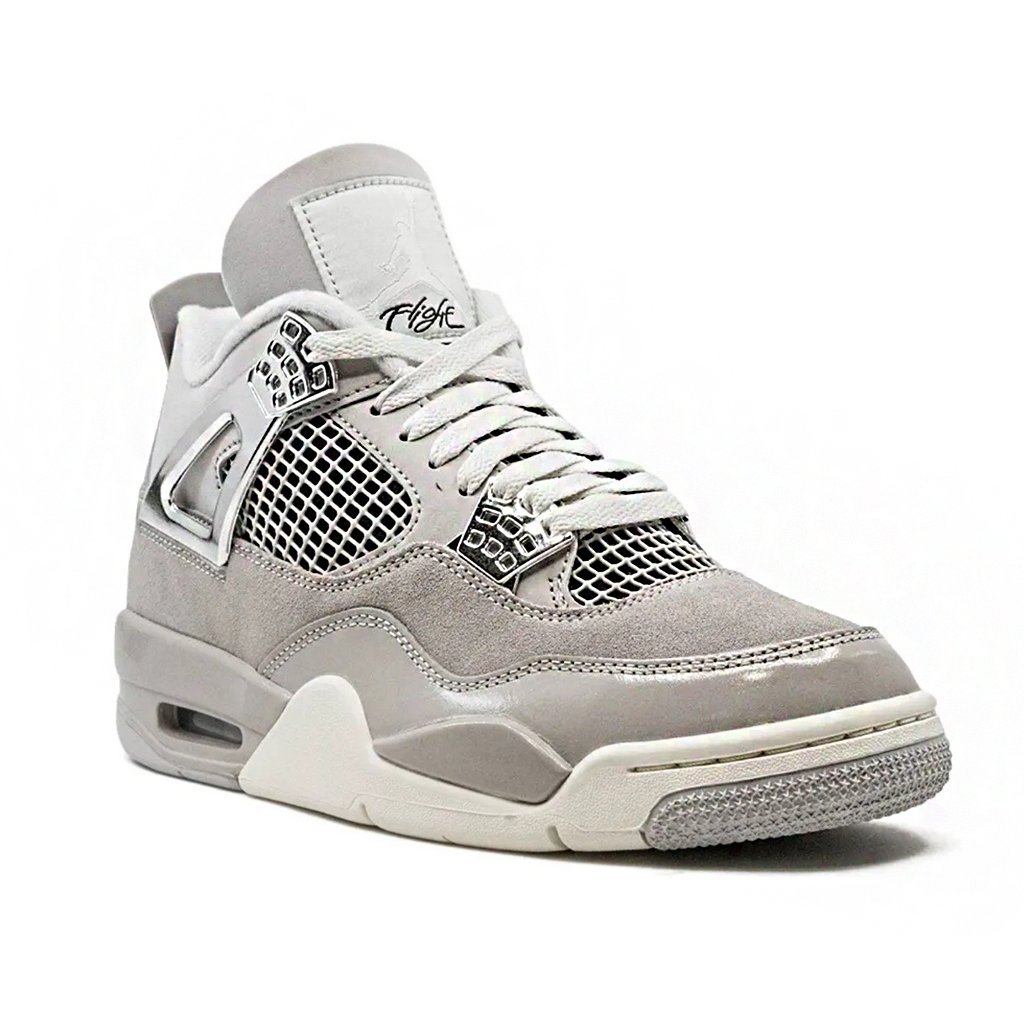 The AJ4 “Frozen Moments” blends a refined neutral palette with premium materials for a sophisticated look. Featuring a mix of soft suede and smooth leather in beige and grey tones, this edition is highlighted by metallic silver accents and iconic Jordan 4 design elements.