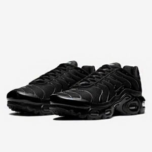 The Nike Air Max Plus TN “Triple Black” brings a stealth look to the classic 1998 silhouette. Built with a breathable black mesh upper, tonal TPU cage, and full-length Tuned Air cushioning, this edition offers everyday comfort with a bold monochrome style.