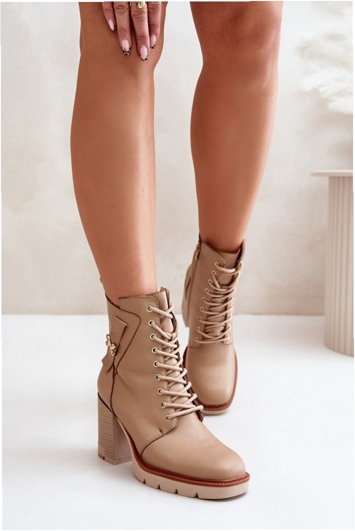 These Jezzi ankle boots boast an elegant design crafted from eco leather. Featuring a zip and lace closure for perfect fit, they stand on a stable block heel. The warm lining ensures comfort in colder days. A stylish strap on the upper, embellished with a gold detail, adds sophistication and highlights the unique character.